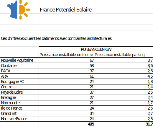 - les toitures en France ont un potentiel considérable de........... 350 GW qui comme indiqué par cette organisation ne porte pas atteinte à la biodiversité, évite les conflits d'usage et les atteintes aux paysages ruraux.