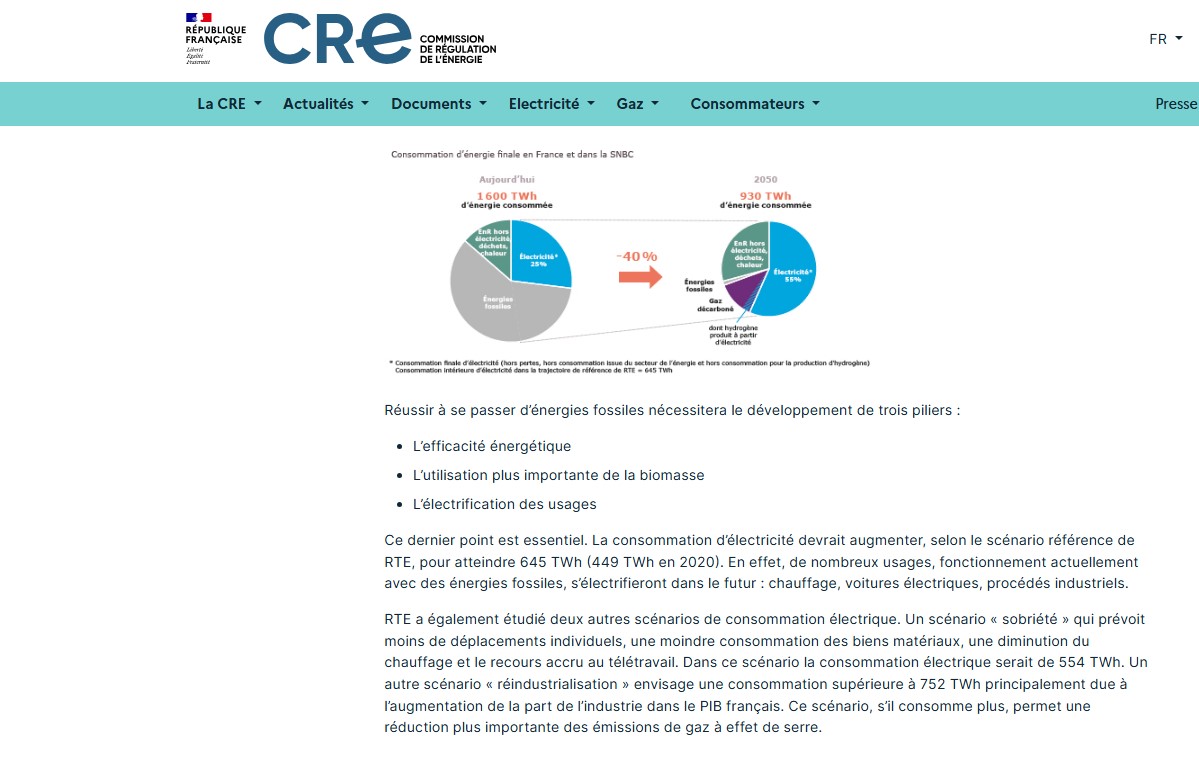 Avec de la sobriété (ce qui est très souhaitable pour diminuer notre empreinte sur les ressources de la planète), la CRE conclut que 554 Twh pourraient suffire.