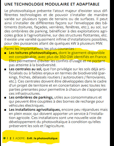 - les toitures en France ont un potentiel considérable de........... 350 GW qui comme indiqué par cette organisation ne porte pas atteinte à la biodiversité, évite les conflits d'usage et les atteintes aux paysages ruraux.